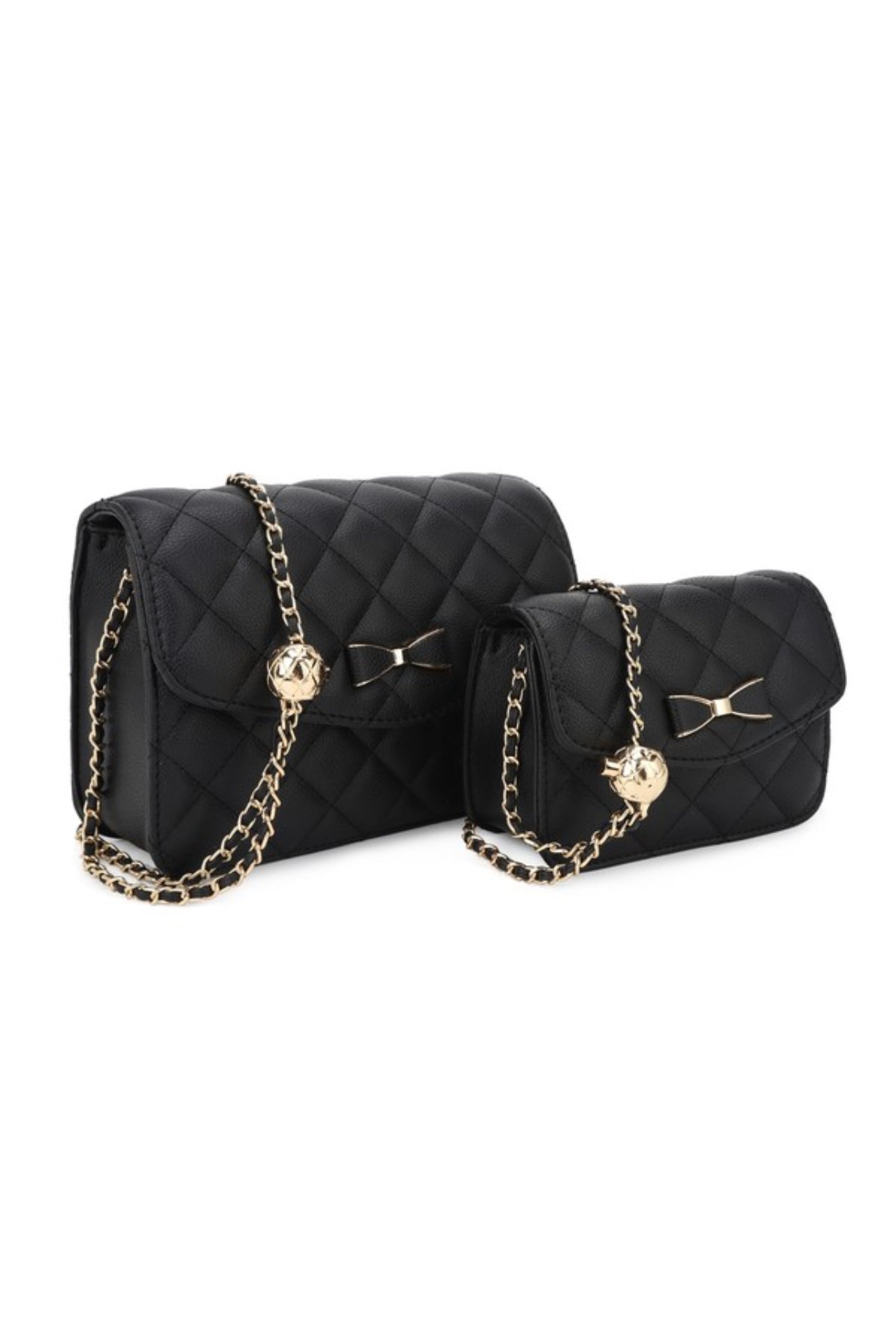 Meet the Blossom Quilted Shoulder Bag set- a delightful pairing designed for the modern sophisticate with a flair for fun. Fashioned from quilted fabric and adorned with a charming bow embellishment, these bags offer both style and practicality.