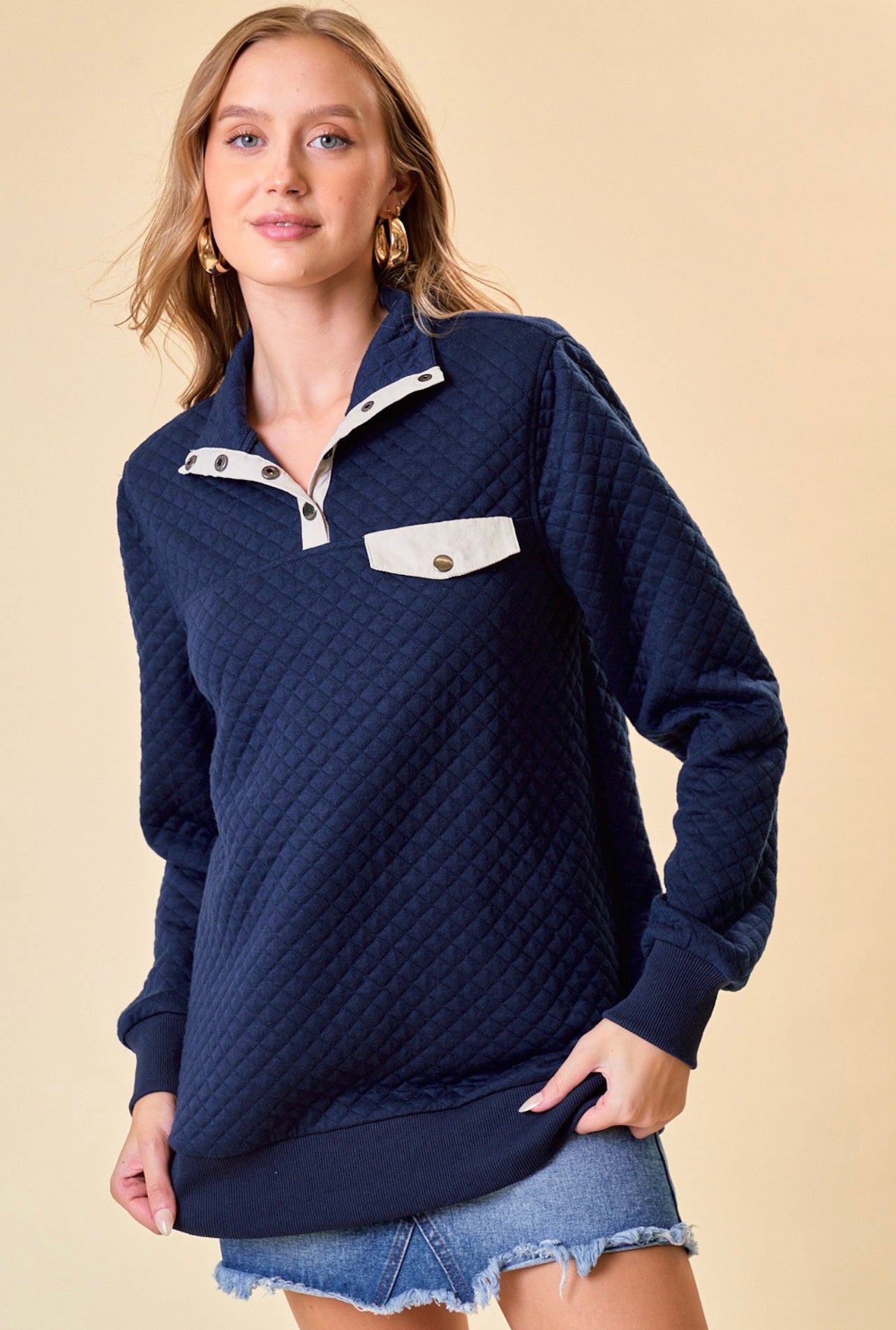 Stay cozy and ready for anything in our Cover Me In Diamonds Padded Pullover. Featuring metal snaps, long sleeves, and pockets. A stylish and comfortable pick for your everyday wardrobe collection.