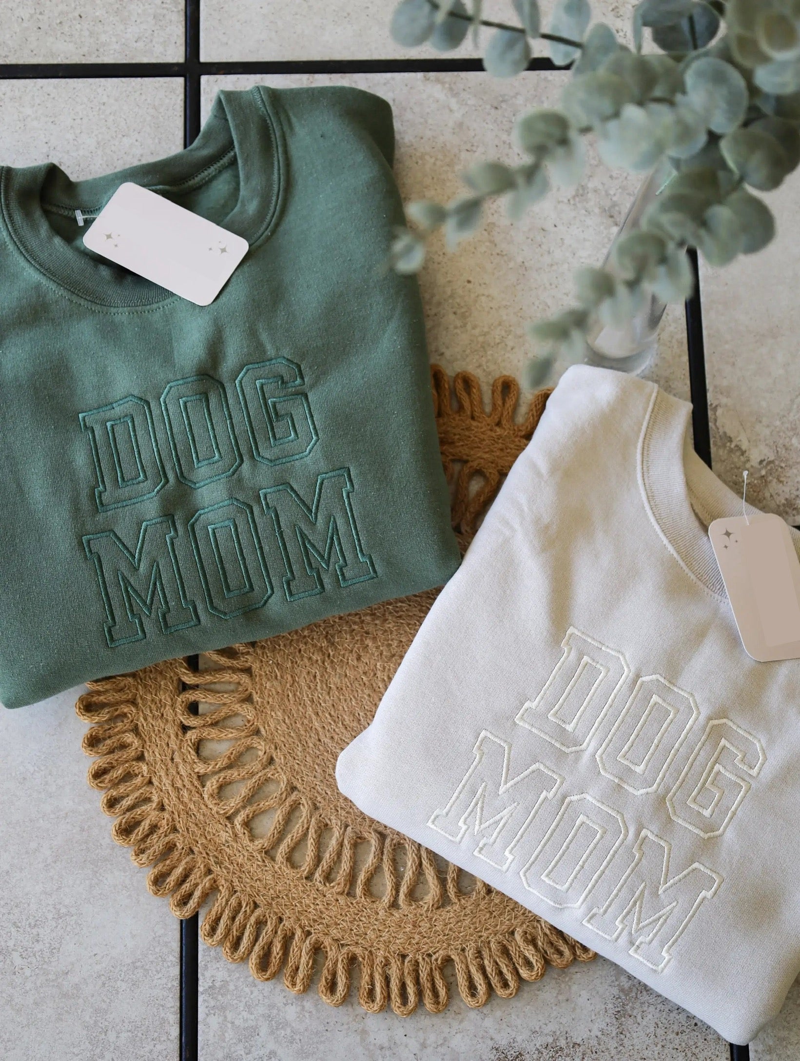Show off your pup pride in style with our "Dog Mom" Varsity Embroidered Sweatshirt! This ultra-cozy sweatshirt features bold varsity-style embroidery, perfect for all the proud dog moms out there. Whether you're hitting the dog park, lounging at home with your furry best friend, or running errands, this sweatshirt will keep you warm and stylish. Designed with a relaxed, unisex fit, itβs the ideal blend of comfort and flair.