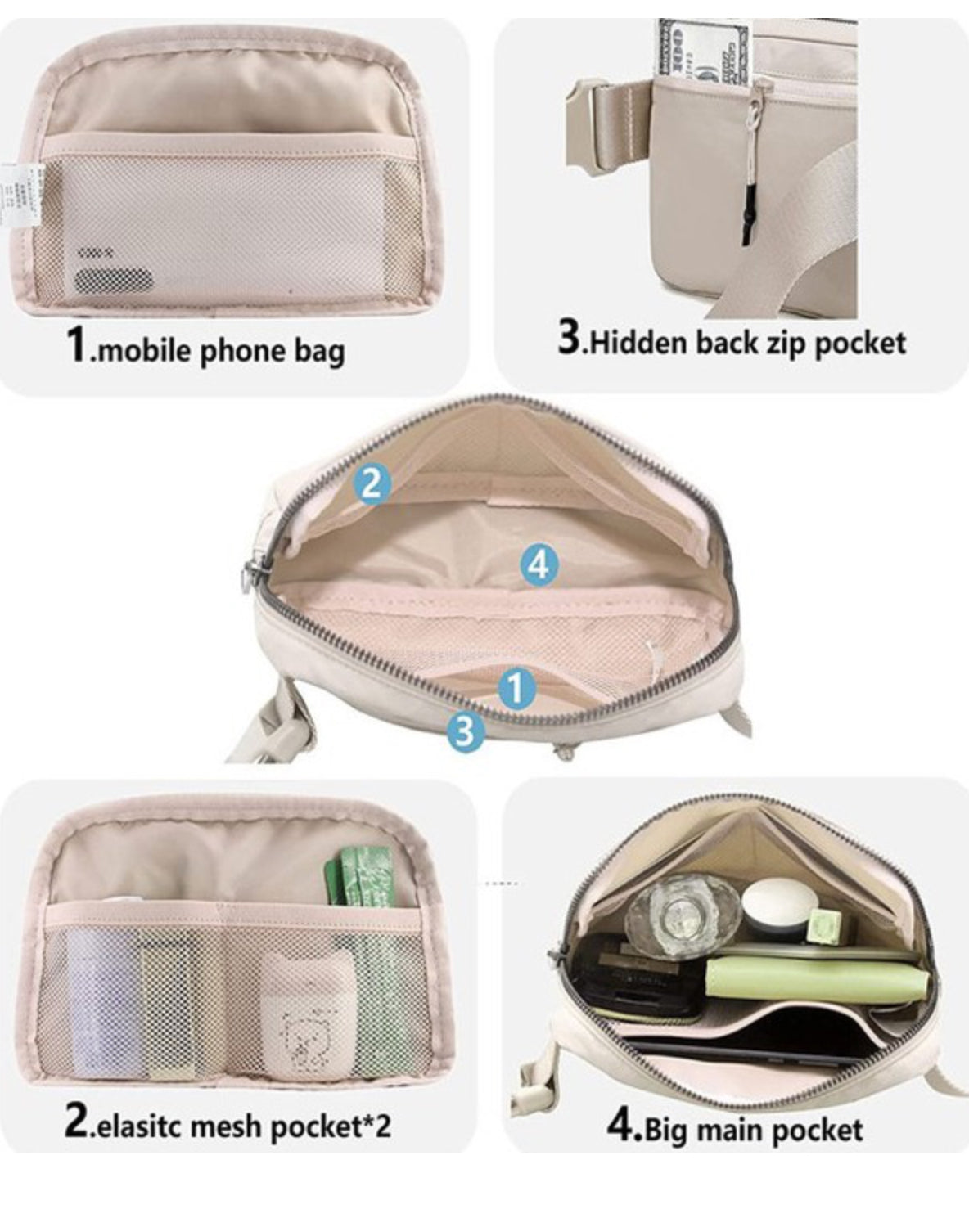 Our waterproof/water repellent Jennilee Crossbody Sling Bag, (also called a fanny pack or belt bag) is stylish and functional, and can be used in many ways.