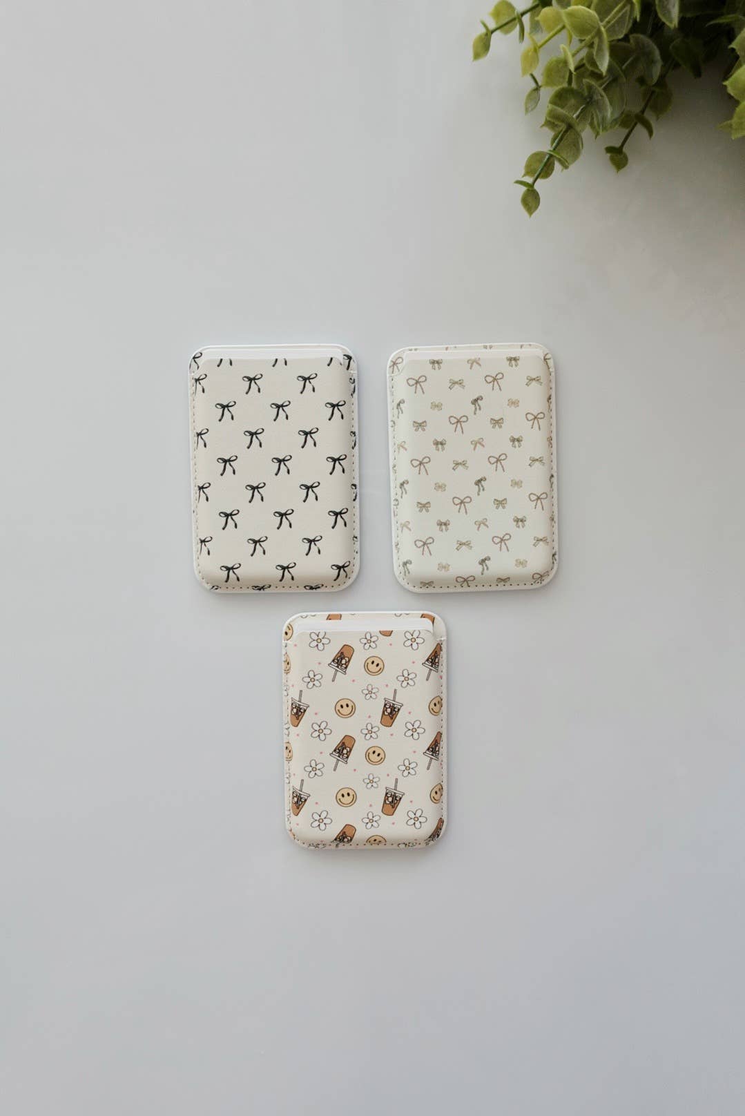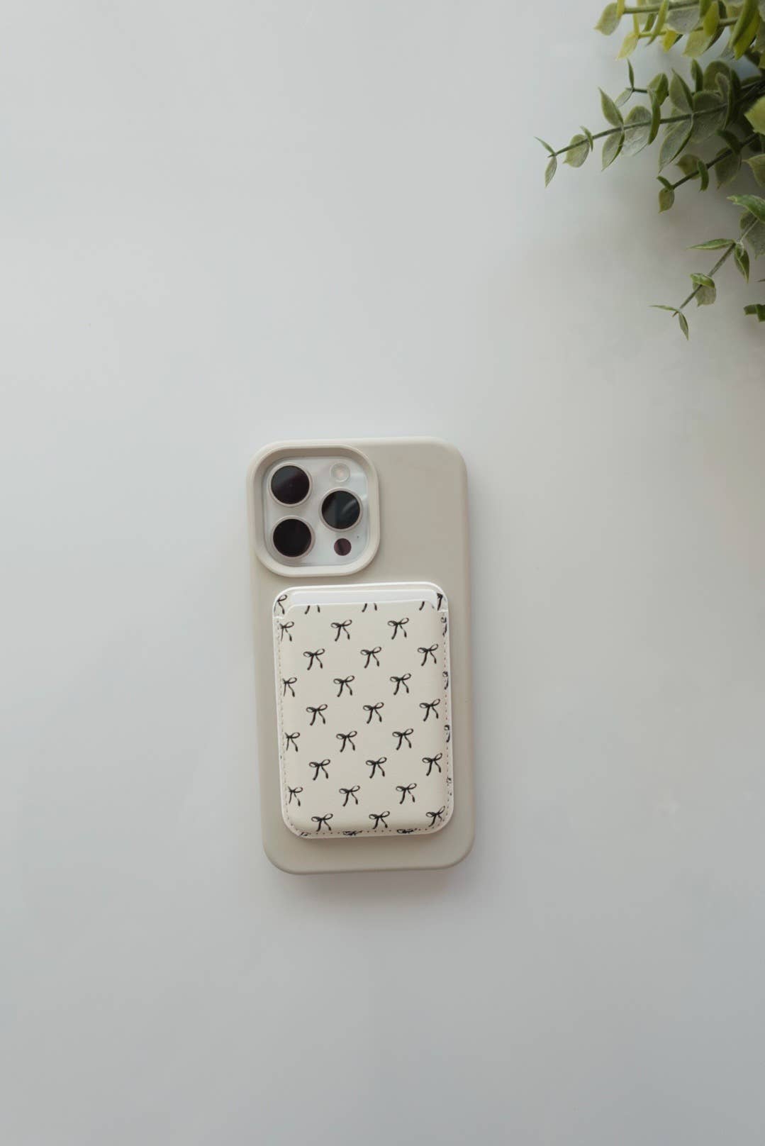 Magnet Phone Wallet, Iphone Magnetic Wallet, Magnet cash wallet: Black Ribbon Bow